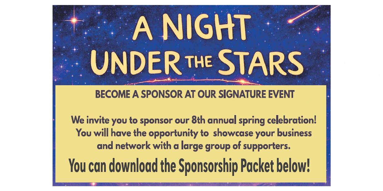 Become a sponsor for our 8th annual Spring Fundraiser, “A Night Under the Stars”, an evening of impact, celebration, and community!